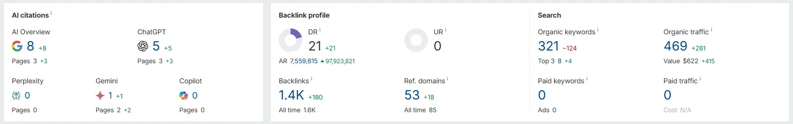 | Referring Domains 🔗 | 19 | 52 | ⬆️ +174% |